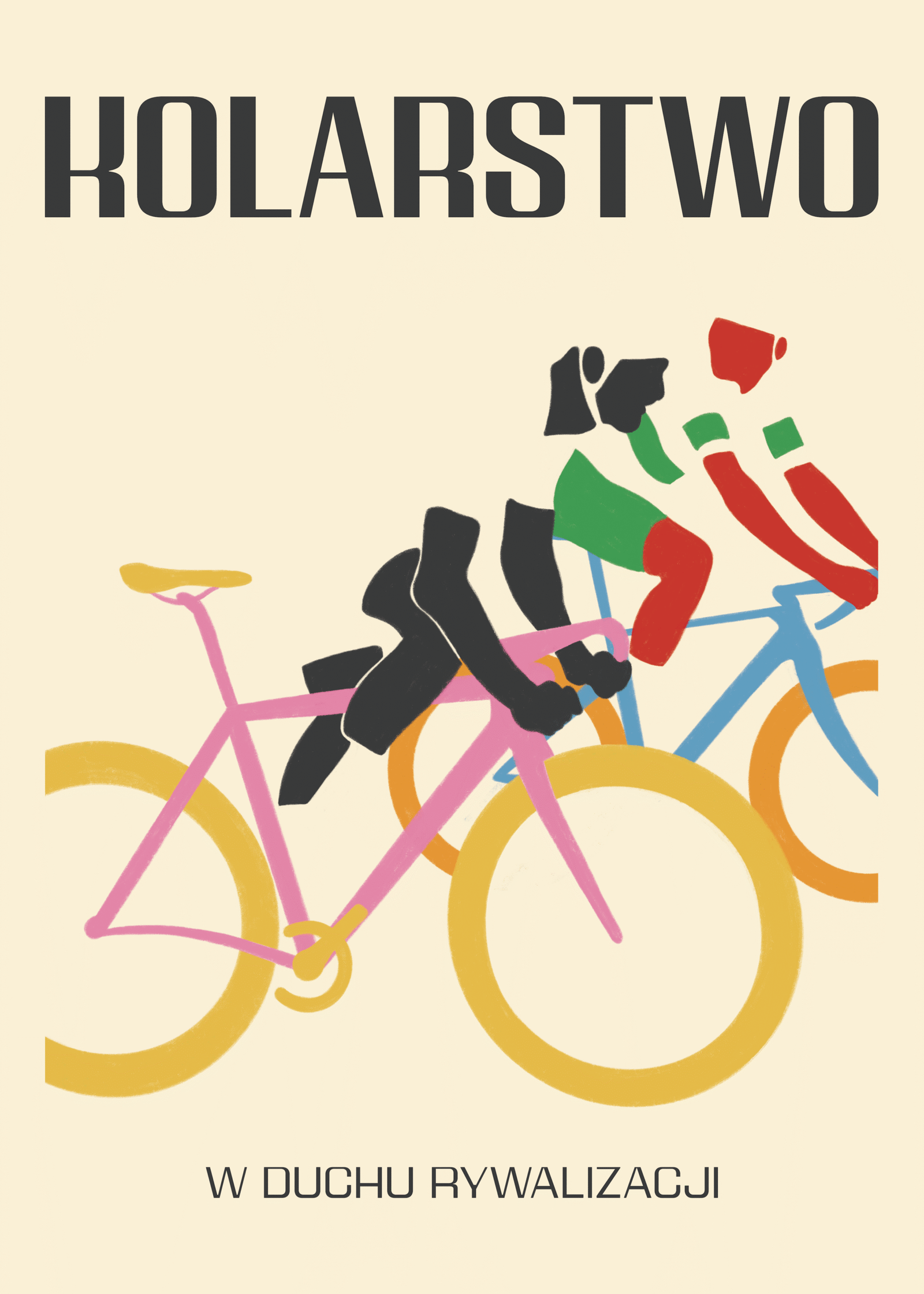 Plakat „Kolarstwo w Duchu Rywalizacji” to ukłon w stronę kolarskich podbojów z własnymi zmaganiami.